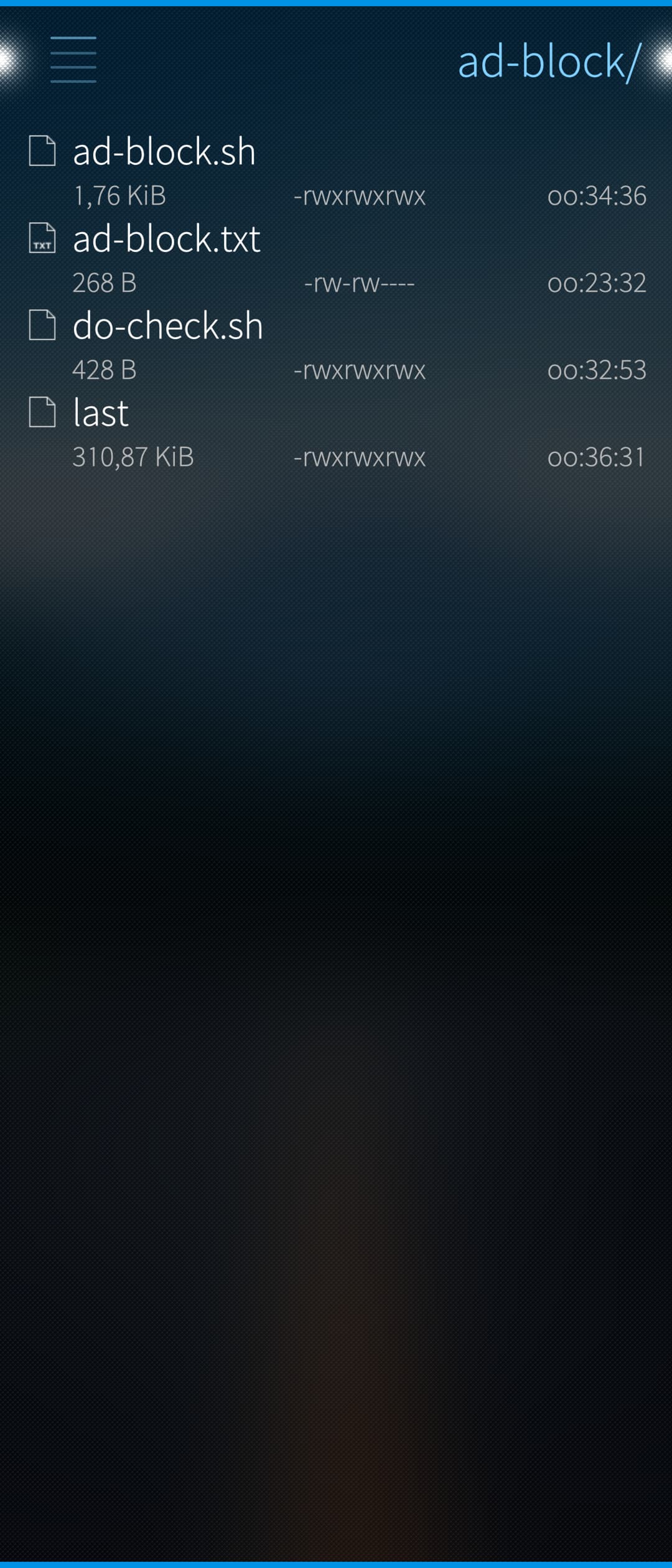 to run it require development option and execution grants (chmod 777), should be executed dy âdevel-su ./ad-block.shâ