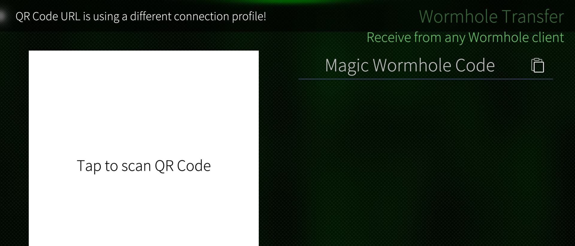 the problem with reading QR code is that Warp or iOS/android app generate just wormhole code (wormhole-transfer:2-some-code) = does not contain rendezvous or role …
