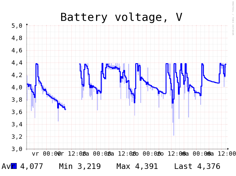 - After waiting some 20-30 minutes, I switched it on again: the initial battery indicator claimed 50% which changed to 45% after the PINs, but some seconds later the “goodby” shut down occurred again.