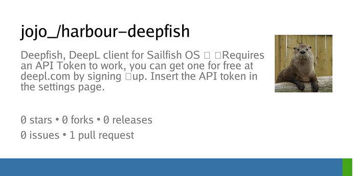 Hi, the sqlite installation of mine was only because I needed to have the command line application to resolve the immediate issue. Your application’s dependencies on the sqlite’s (python?) libraries will make sqlite transparent to the end user, I presume (I hope). You should also consider which folder your application is using - I could not get it working before I created myself the symbolic link harbour-deepfish. I am not sure this is your intention when installing from Openrepos and not from Jolla store. Actually, I do not know is there such a rule but yourself mention org.jojo_ as folder name. It does not work for me. Thanks again for the great work.