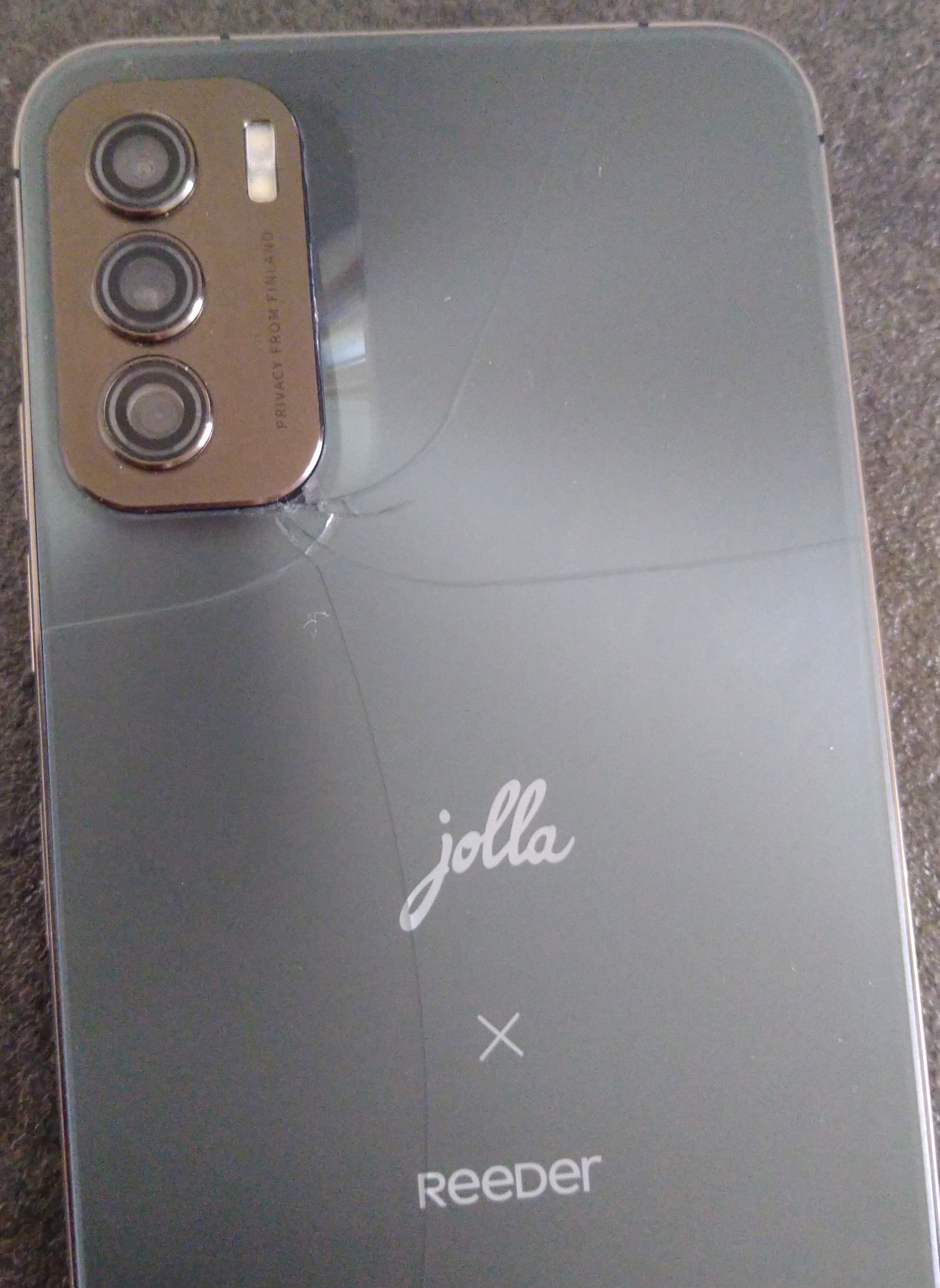 The worst thing is that I haven’t even used it much, it’s just been laying on a table and occasionally getting charged for the next software update, but despite never even leaving the house, the back is now cracked like a teenager’s iPhone. My Xperia 10 II, which has been going in and out of my pocket for four years and has fallen on the floor many a time, only has a minor scratch on the plastic rim from falling on a very rough surface. My original Jolla phone, which I used for more than seven years and on one occasion even accidentally launched across the room, only had the paint on the edges fade.