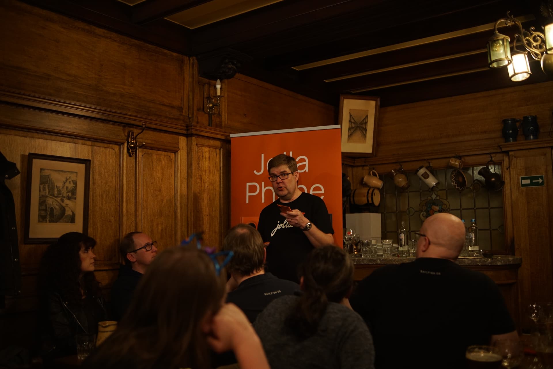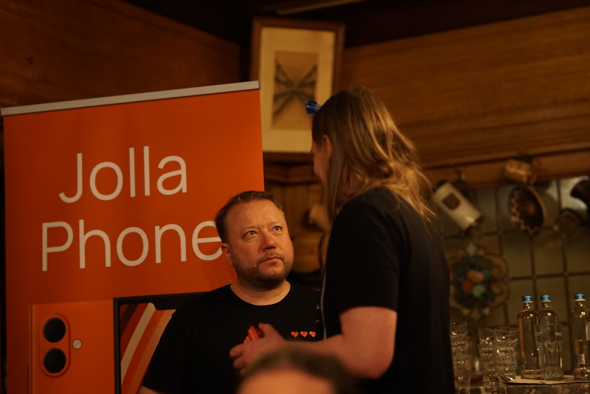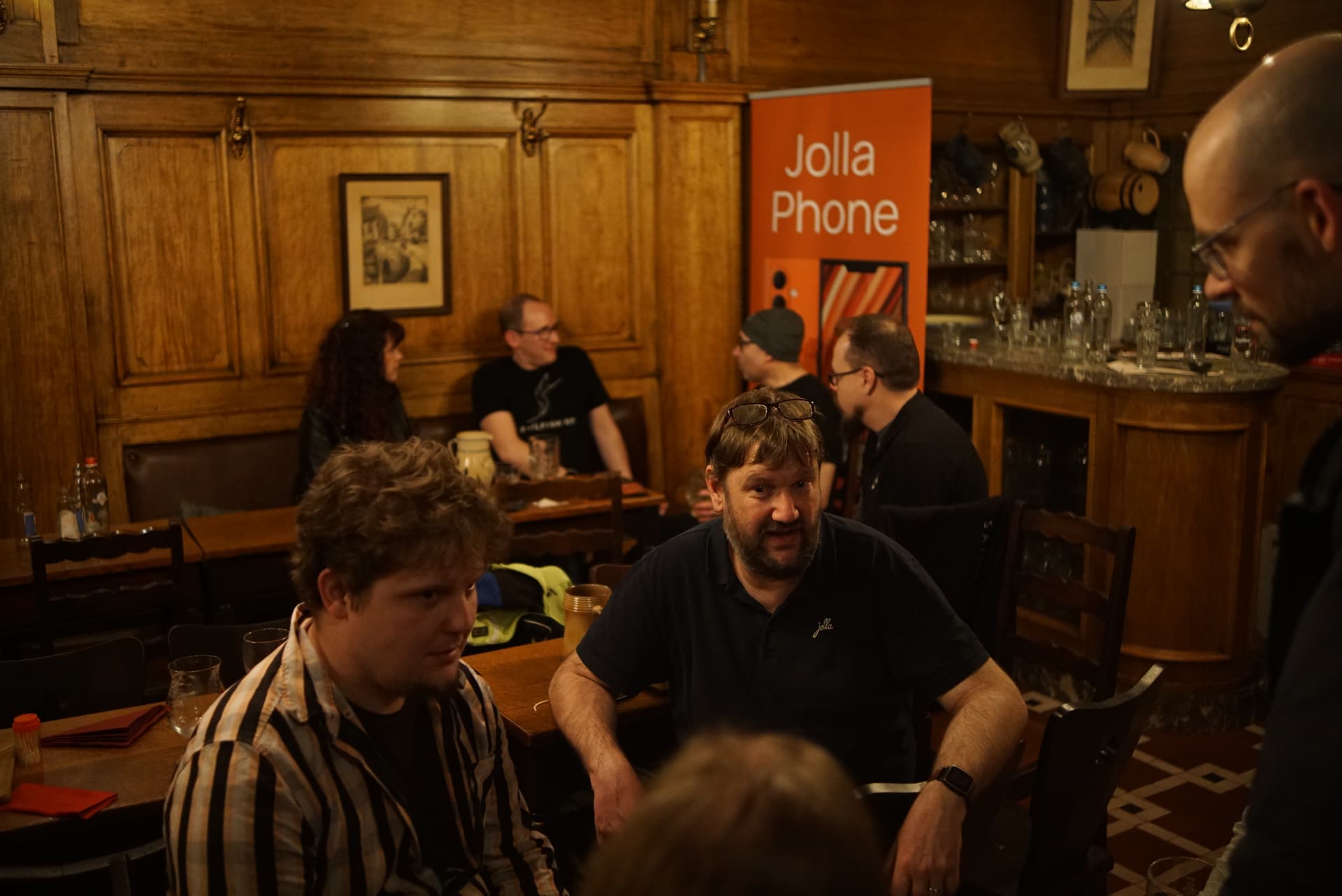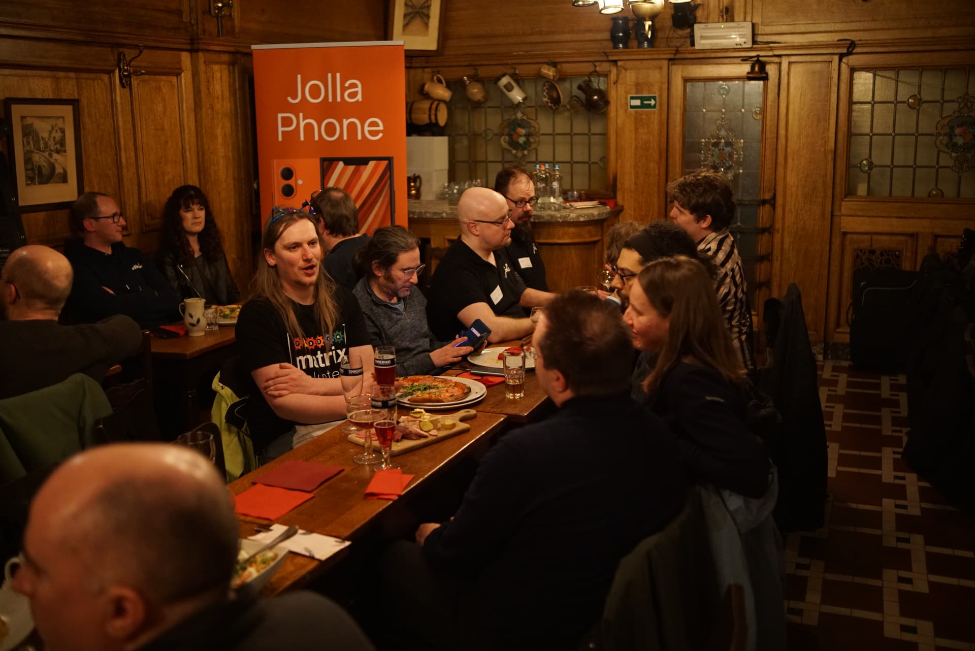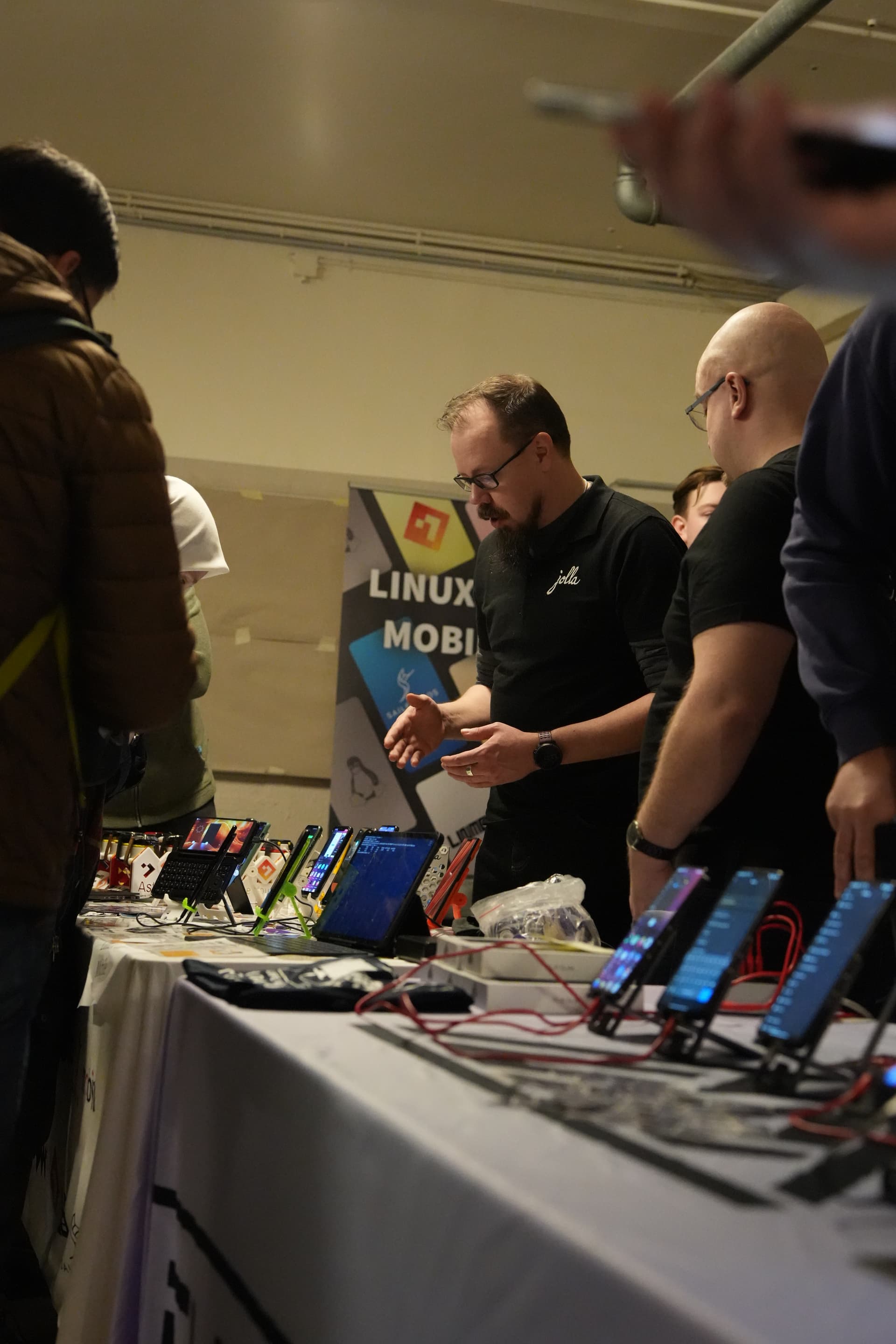 Some pictures from the event, including the À la Bécasse cat showing interest in the Jolla community phone.