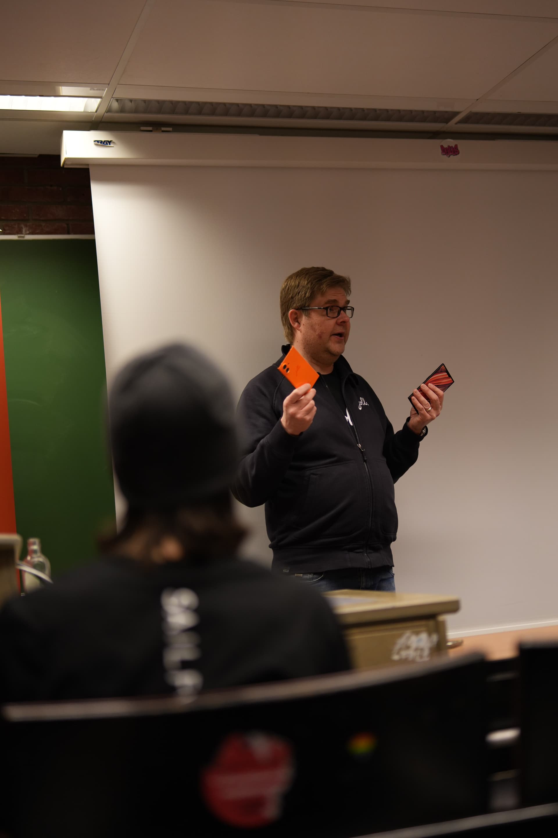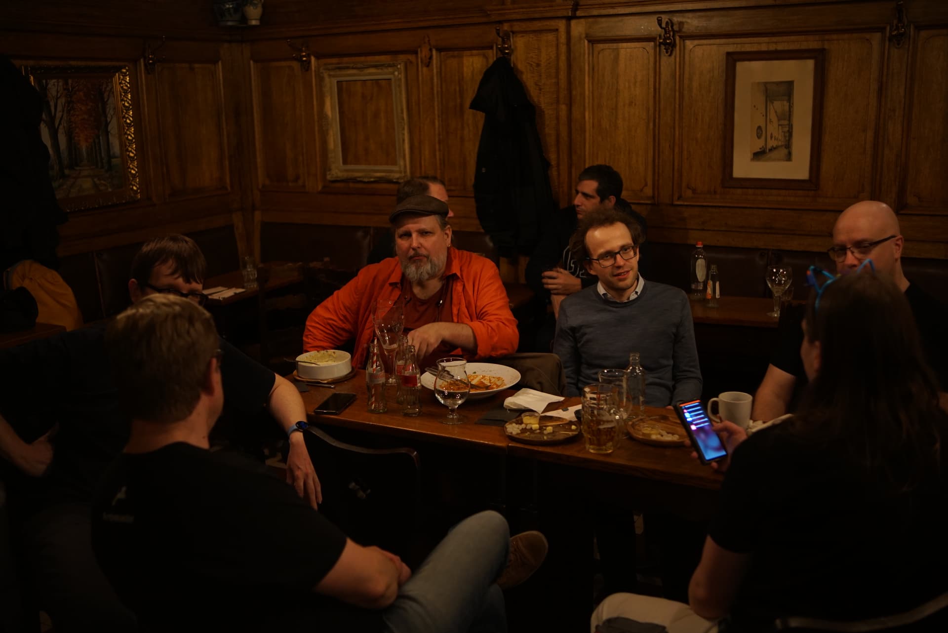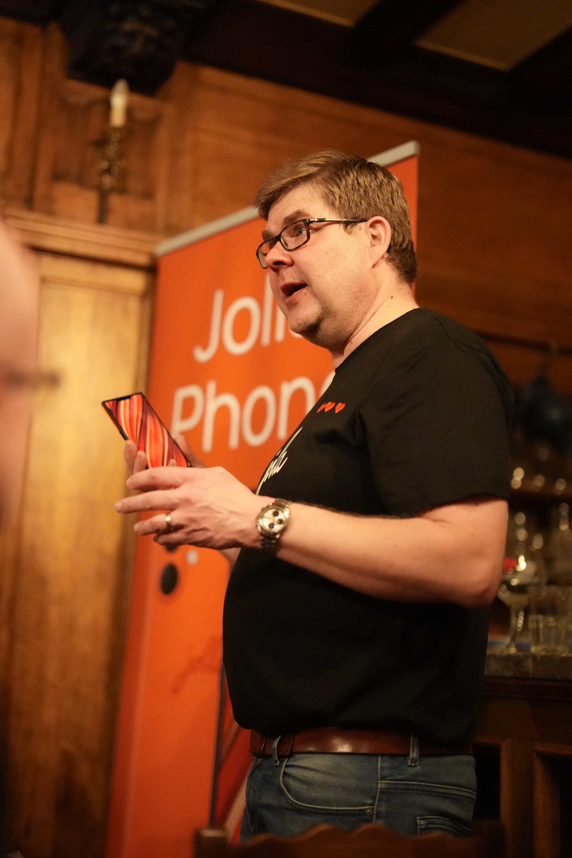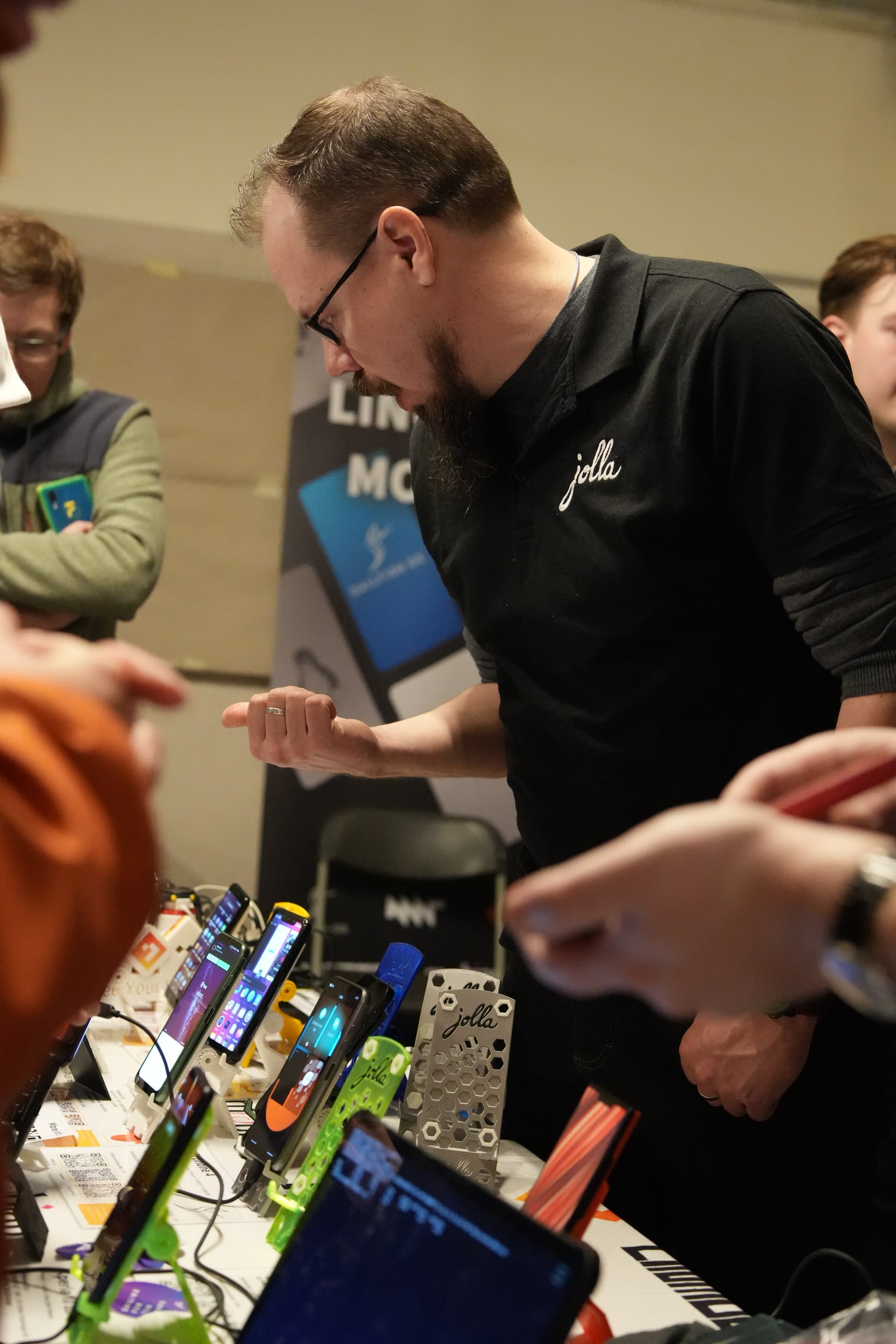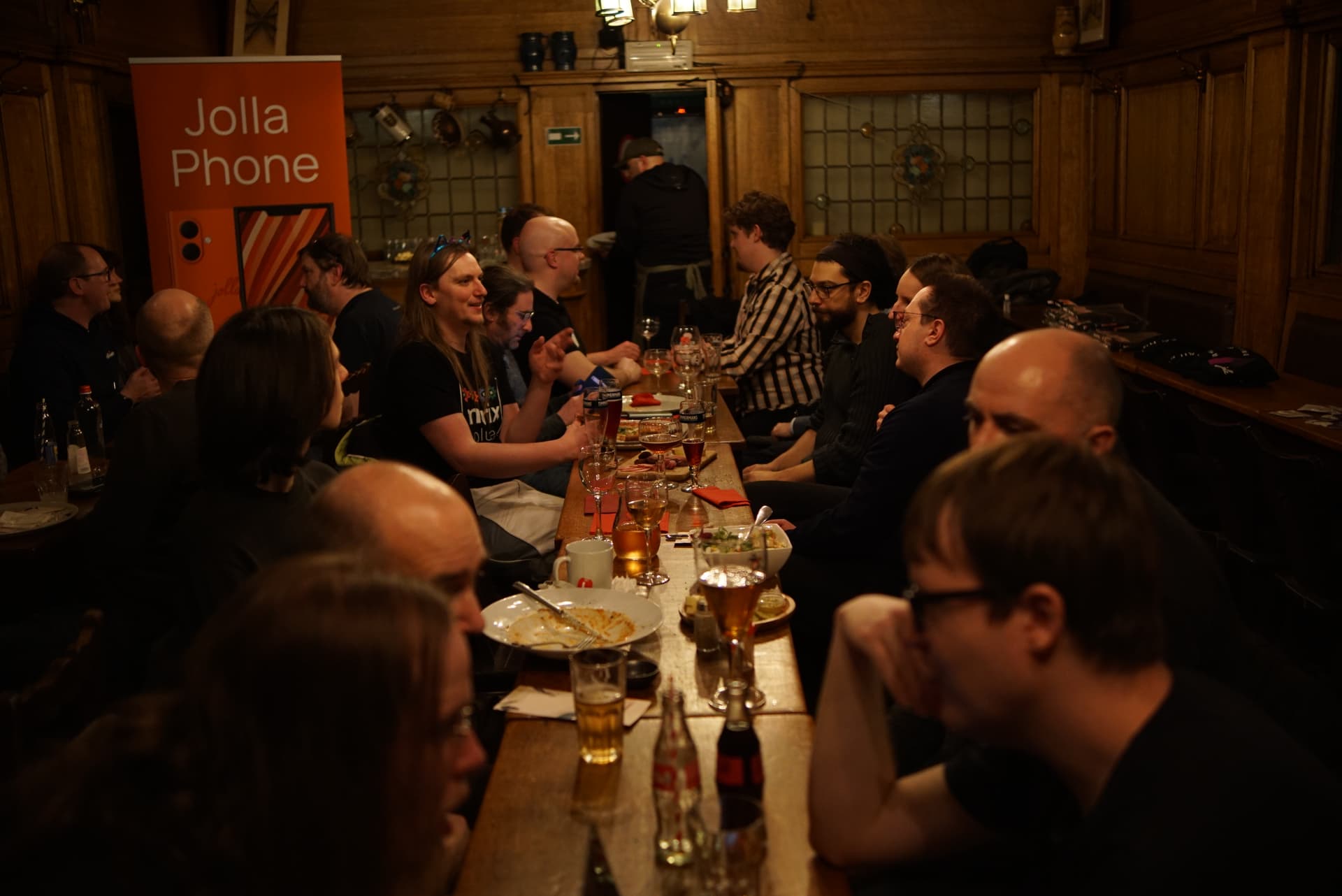 Some pictures from the event, including the À la Bécasse cat showing interest in the Jolla community phone.