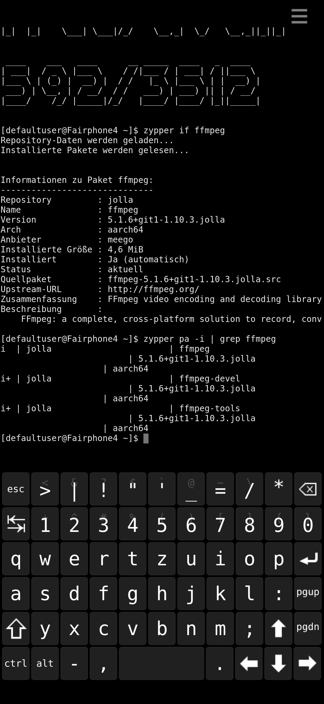 If ffmpeg comes with SFOS it should be newer, shouldn’t it? Also there’s another package in OpenRepos, which has been updated lately, which I can’t install (just refresh cache, which also doesn’t help).