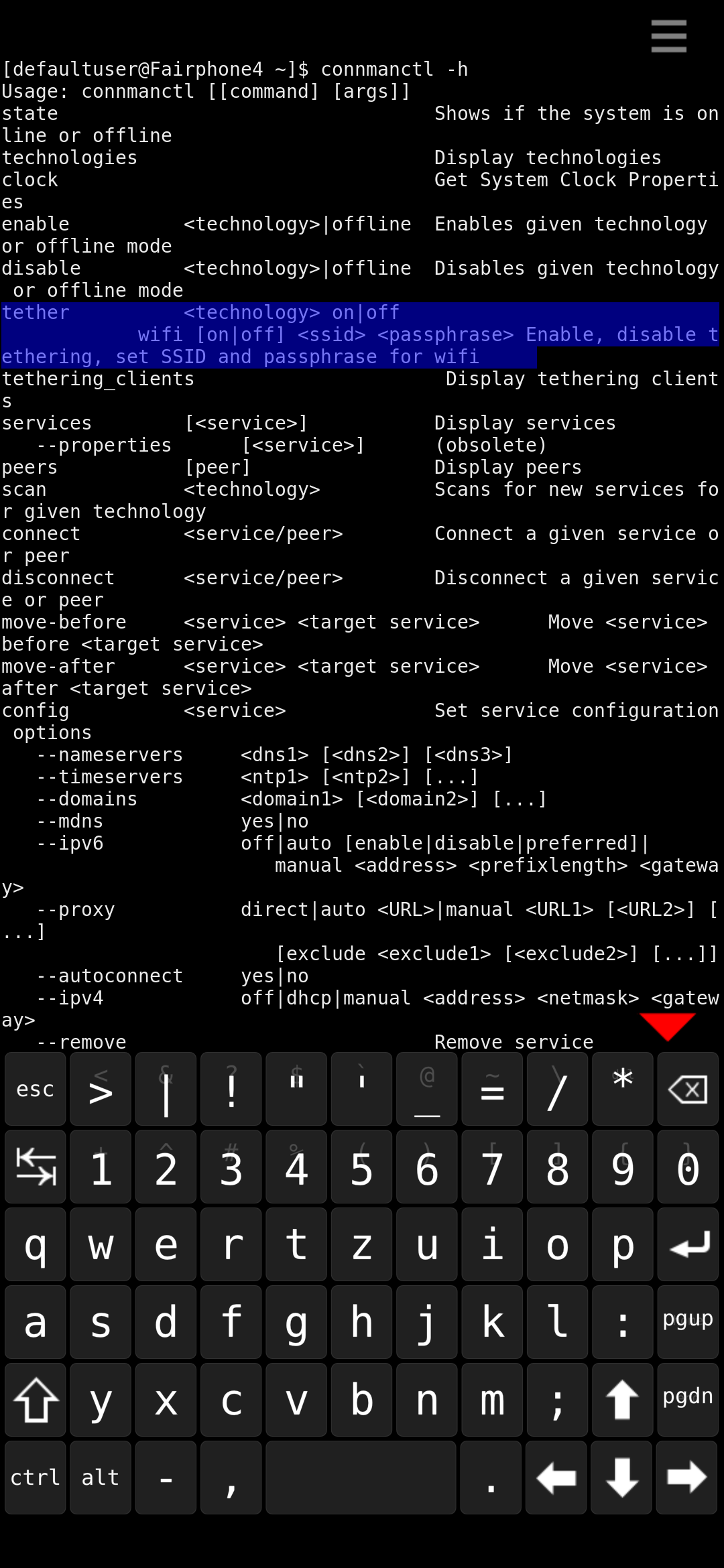 Thank you very much @throwaway69!!! Connman-tools is the solution. When I tried earlier I got the ‘permission denied’ message, because Wifi was disabled. I had to enable wifi over the button, after that I used connman-tools and now it said ‘in progress’ and worked just fine. the other device can connect to the hotspot and I can stream movies over Jupii now. Great