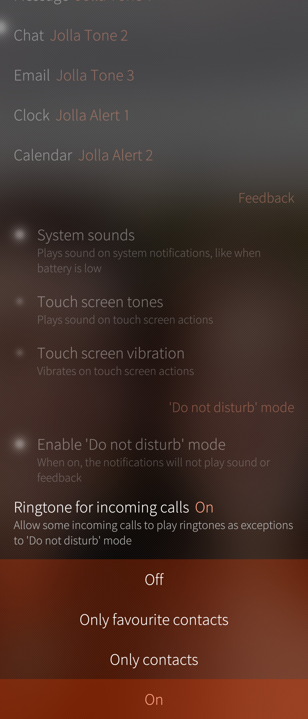 If Do not disturb and Ringtone for incoming calls are on, this will happen: