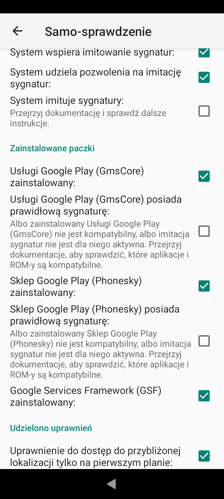 Can you post the screenshot from your Sailfish Android App Support Settings page and from microG SelfCheck ?