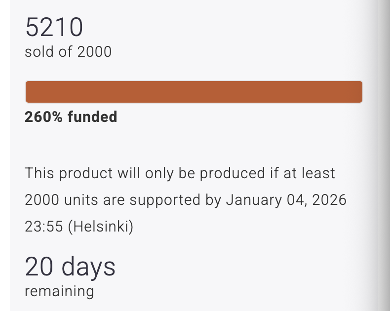 Batch #1 (499 eur total price) sold out. Estimated delivery by the end of H1/2026.