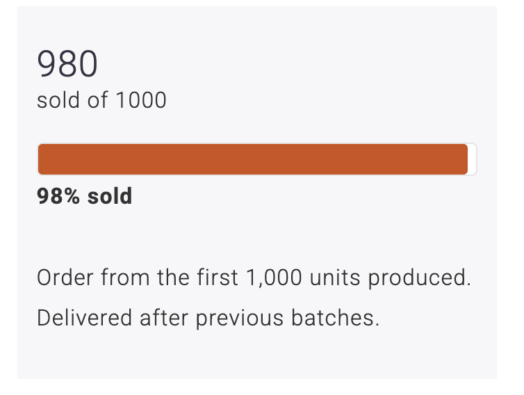 10 left. Whatever it will be, this batch of 1000 will be sold out by tomorrow.