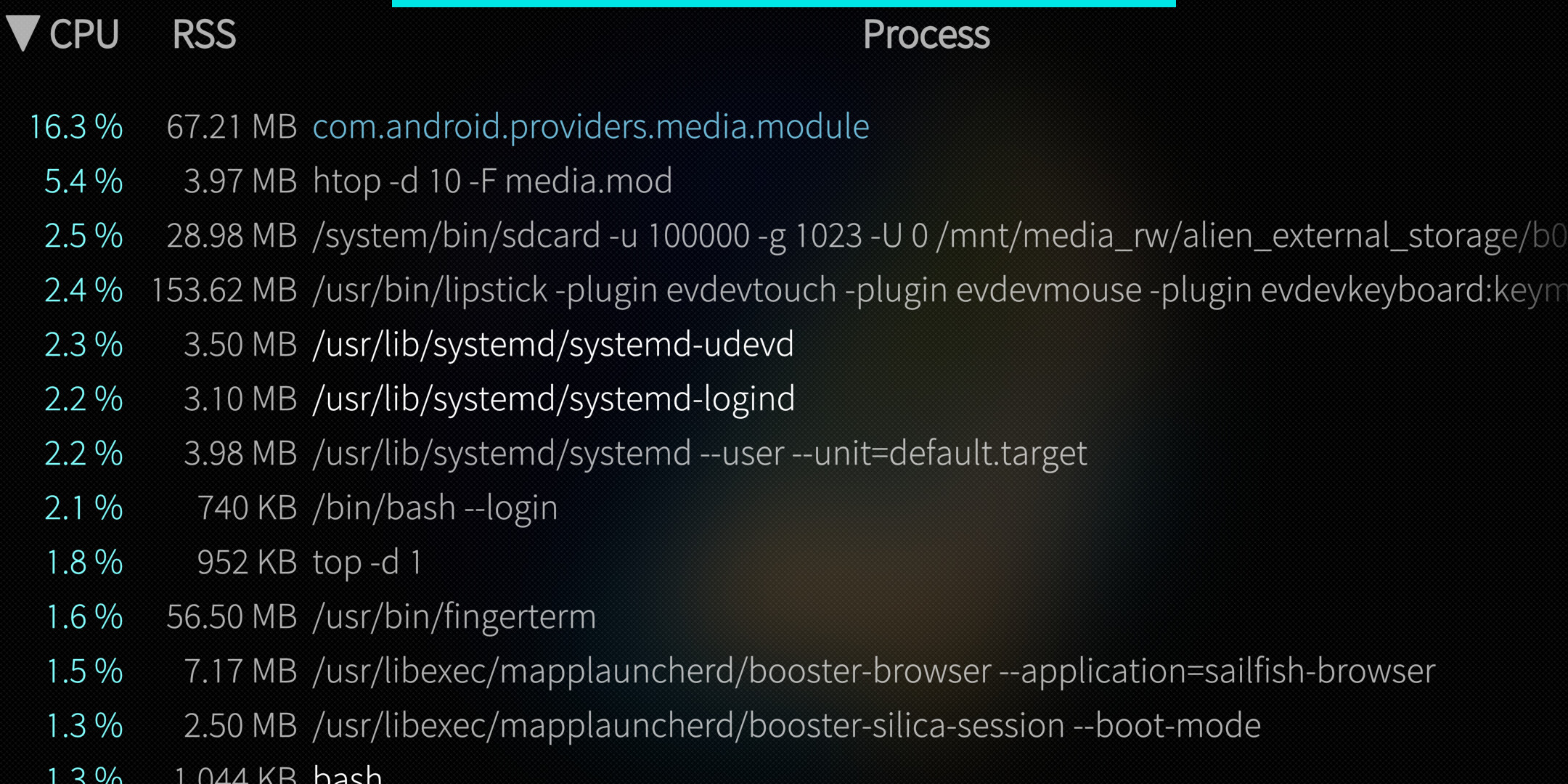 reasonable cpu usage as media scanner runs for a few minutes on first boot, like in sfos4.4
