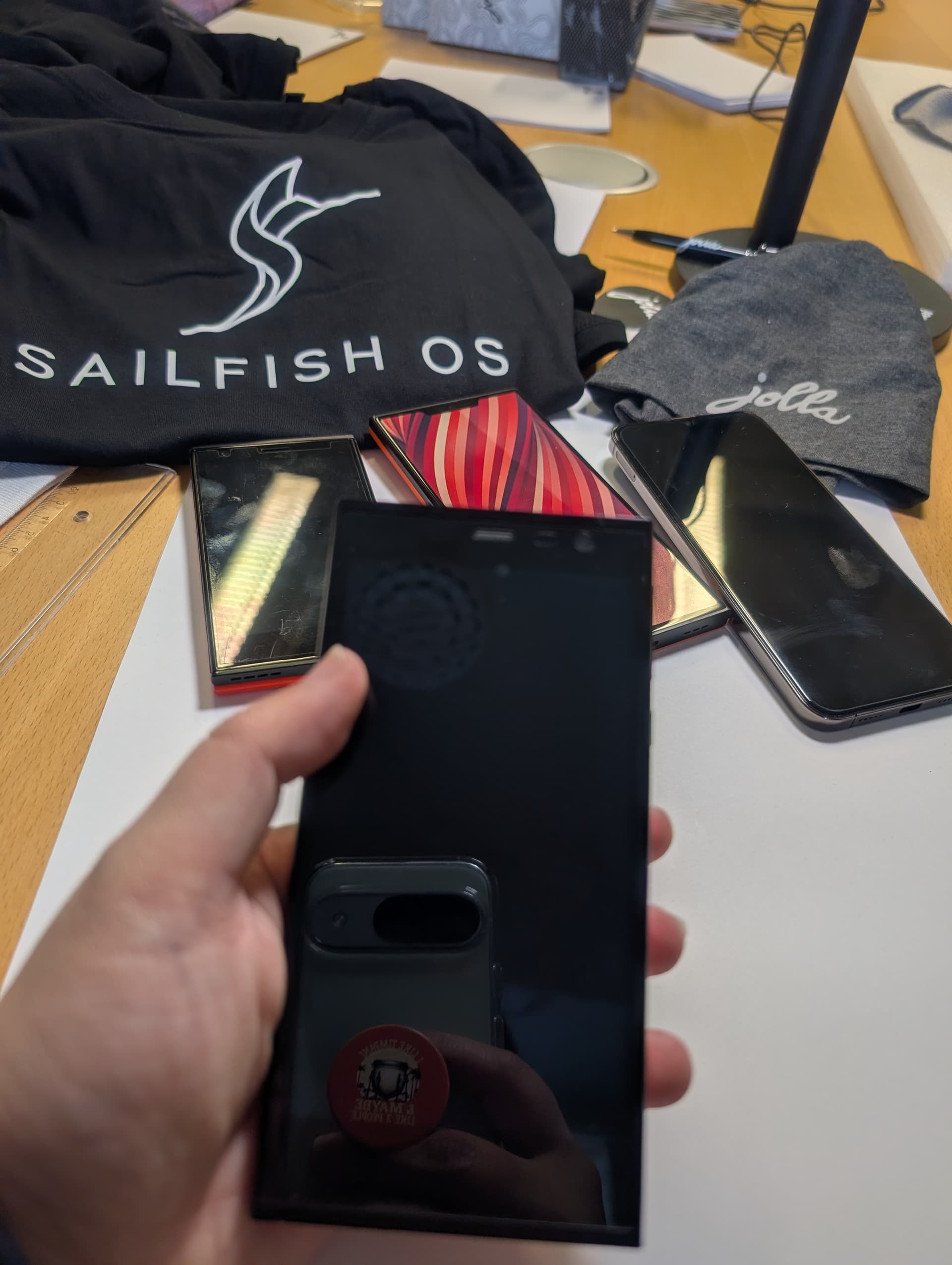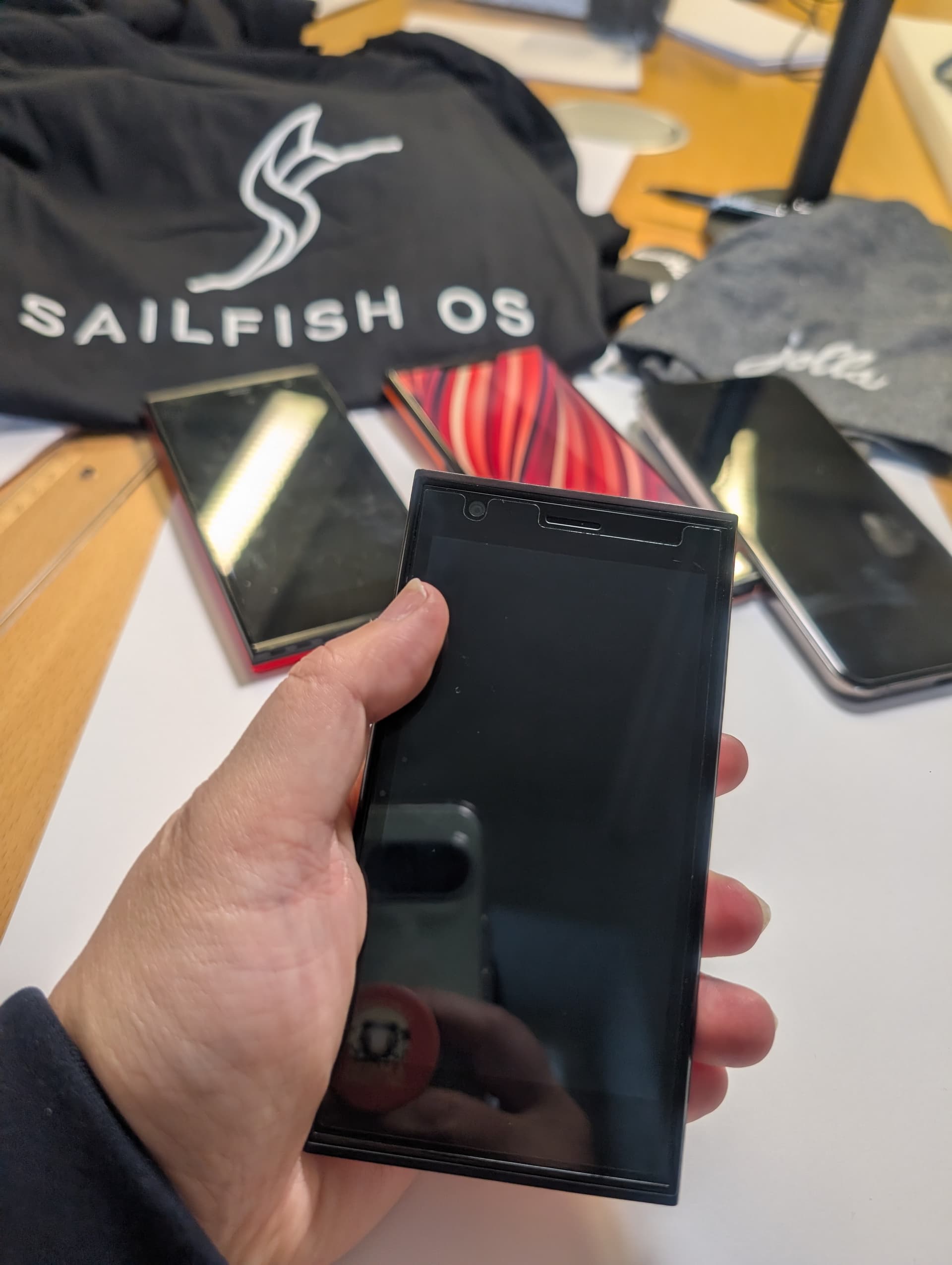 There is also a nostalgia cabinet in the office, filled with devices that paved the road to Sailfish OS, plus most past and present devices that run Sailfish OS. I have the N900, N9, and N950, although I was working on Symbian/S60 rather than Maemo/MeeGo back in Nokia times. I also have many of the J1 TOHs, and hope to see that happen for J2! I’m calling it J2 now but that’s not official! Don’t quote me. Let’s see if I can refer more people for the preorder to reach the 10k milestone.
