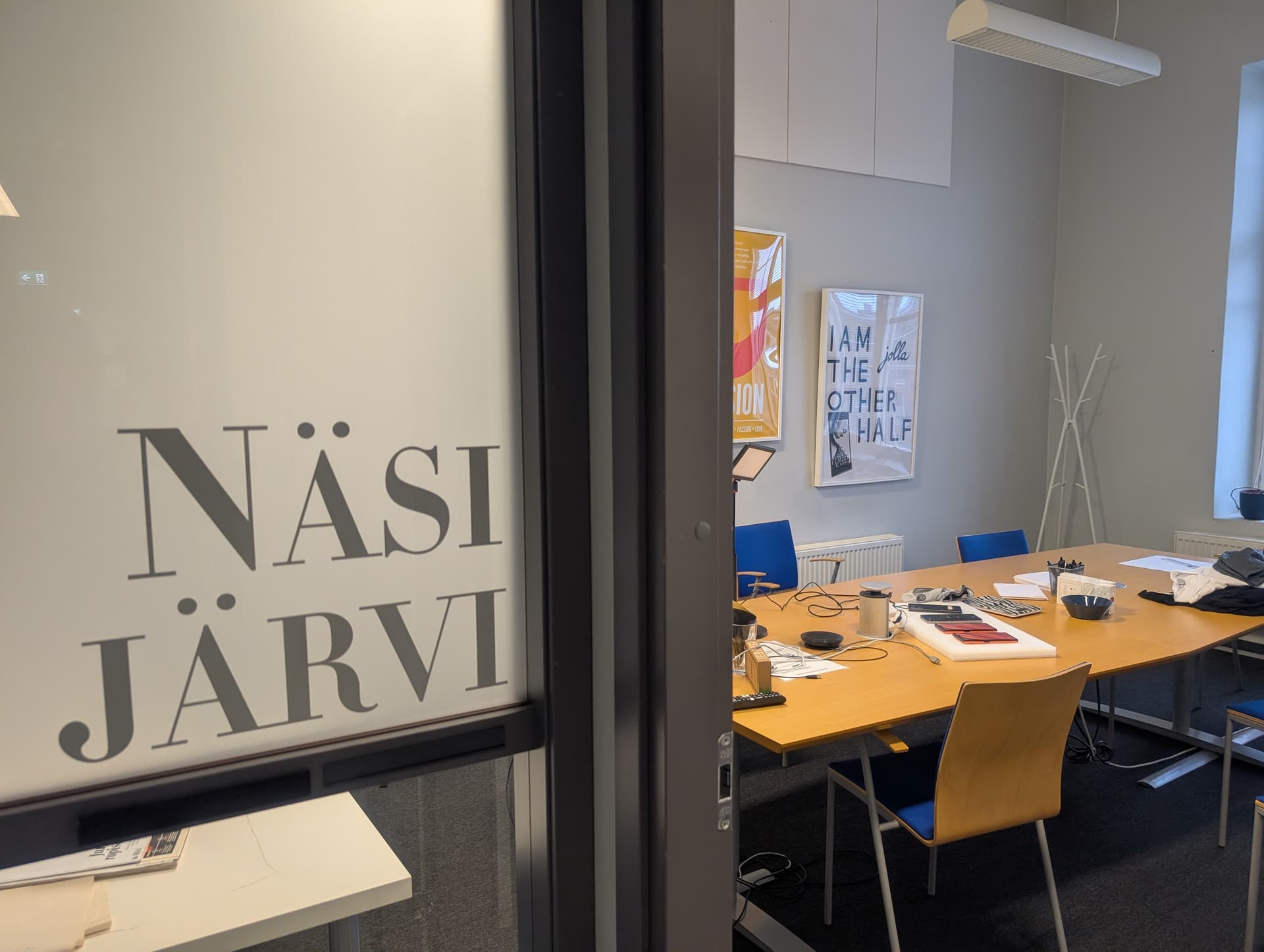 (I do travel a lot for work so I like the balance of working from home.) Anyway, we had our nice discussion in this Näsijärvi meeting room, after which Sami said I can do whatever I want with the devices and “props” that Raine provided (shirts, notepads, stickers etc.) except for taking home the appearance models. Oh darn