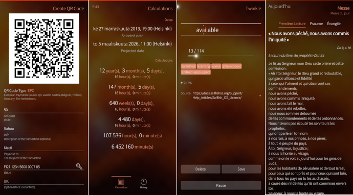 AELF is a native Sailfish OS application providing Catholic liturgical content from AELF.org: daily Mass readings, Liturgy of the Hours, full offline Bible, and liturgical calendar for the French-speaking community.