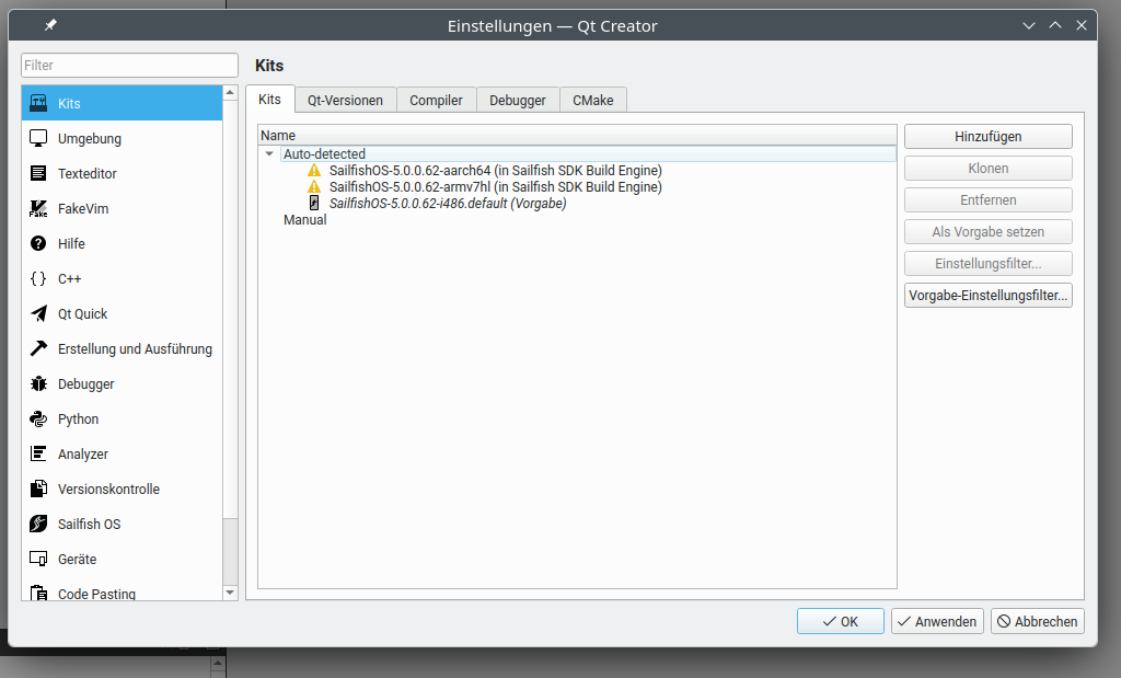 (the exclamtion mark for armv7 and 64 is there because I havent added a device yet but this is not needed to build)