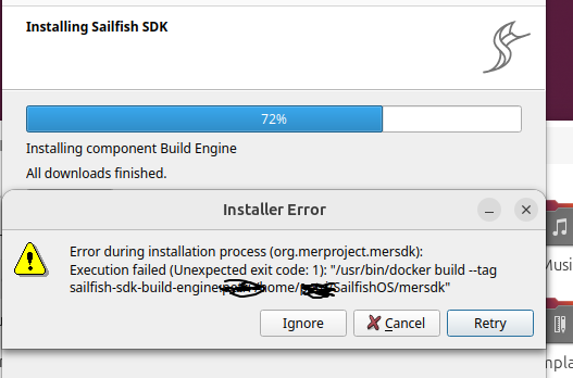 This is the error, when selecting docker from installation option (when trying to install on Linux). Installation seemed to be successful when selecting the virtual box option.