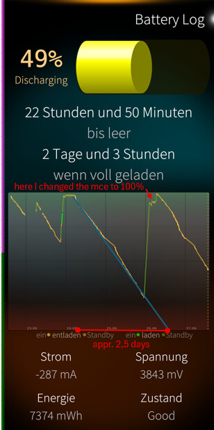 Apparently, it’s set that way by default, even if you deactivated the charging limit in the settings. It still showed 100%? Only in the Batterylog app I could see that it only fully charged when I charge it in shut down mode via the Sony kernel.